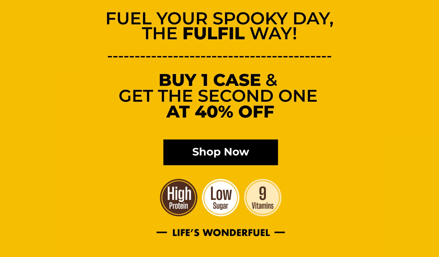 Our most-loved FULFIL bars are part of our Halloween promo! Stock up on your favourite flavours: high protein, low sugar, and packed with 9 essential vitamins.