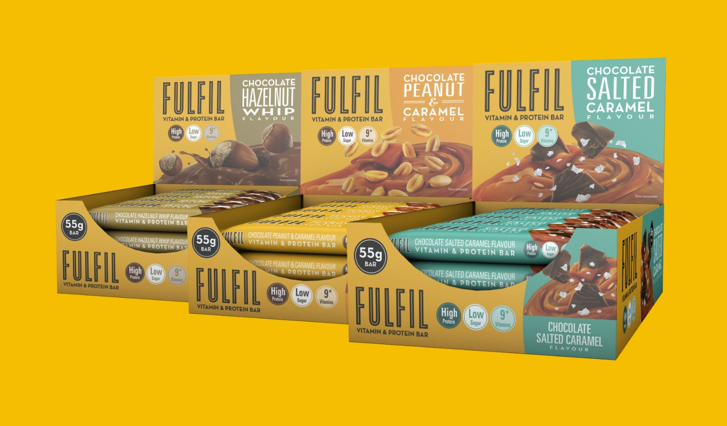 FULFIL bars (55g) are packed with at least 18g protein. That’s at least 33% protein per bar, making FULFIL one of the highest protein bars